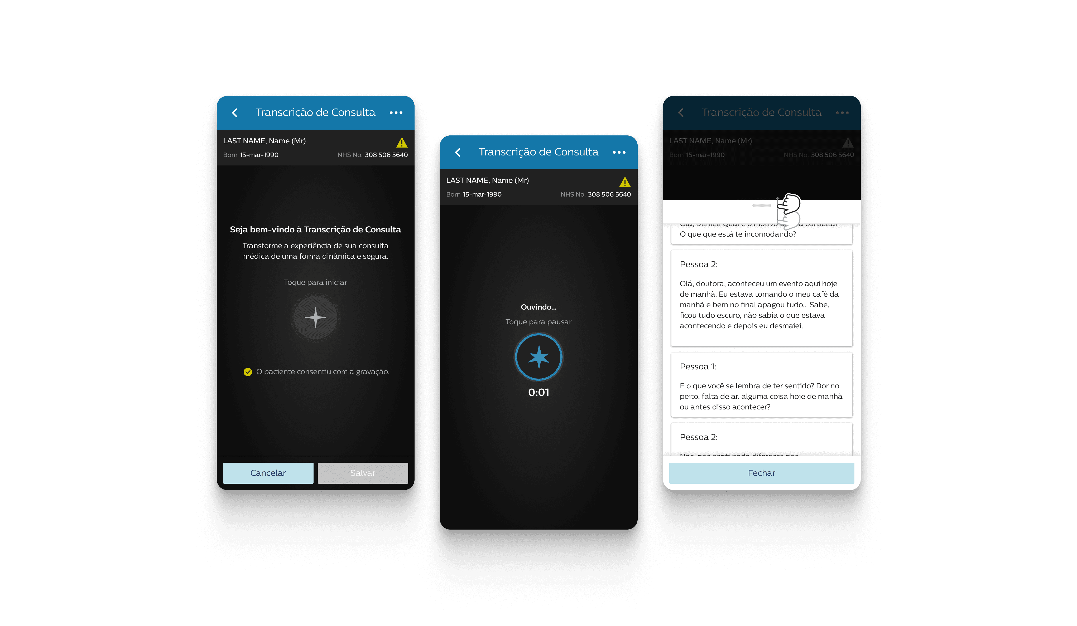 Challenge: In order to amplify the flow of Ambient Documentation, a tool made to record a consultation, transcribe the dialogue of patient and doctor and further extract data, the team was tasked with creating a mobile flow that would be able to record a consultation and sync the transcription with the web suite. In the process, we were also developing the new version of Ambient Documentation.