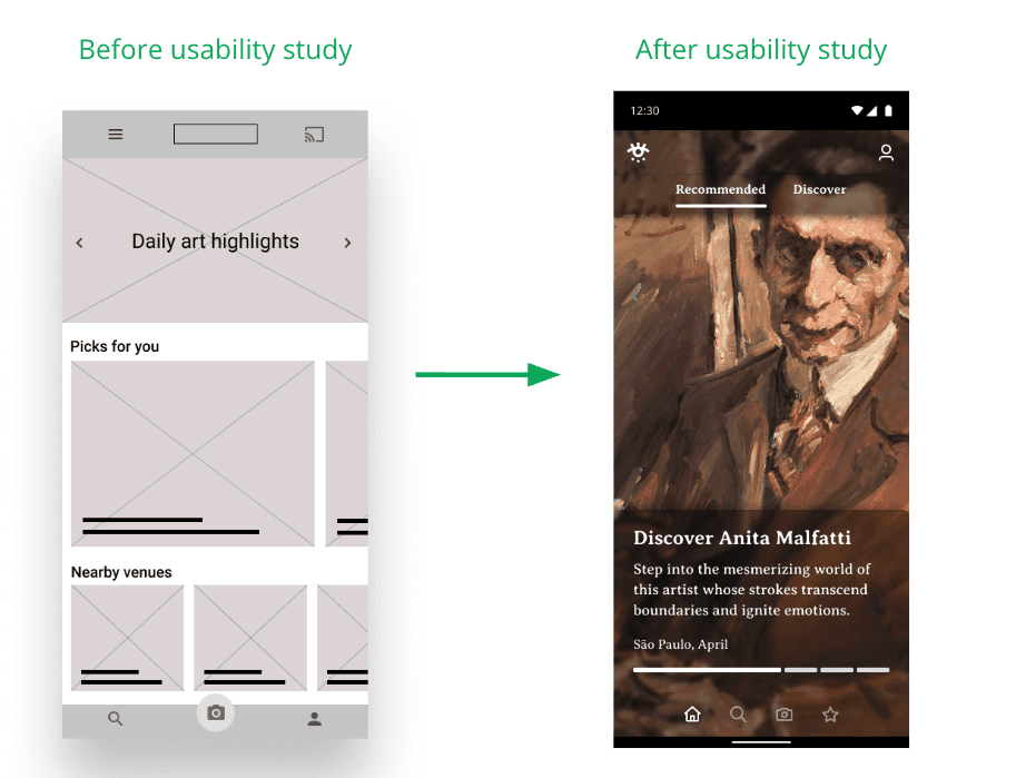Usability study findings were directly applied in the high-fidelity mockup phase. Two key screens showed the most dramatic transformations: