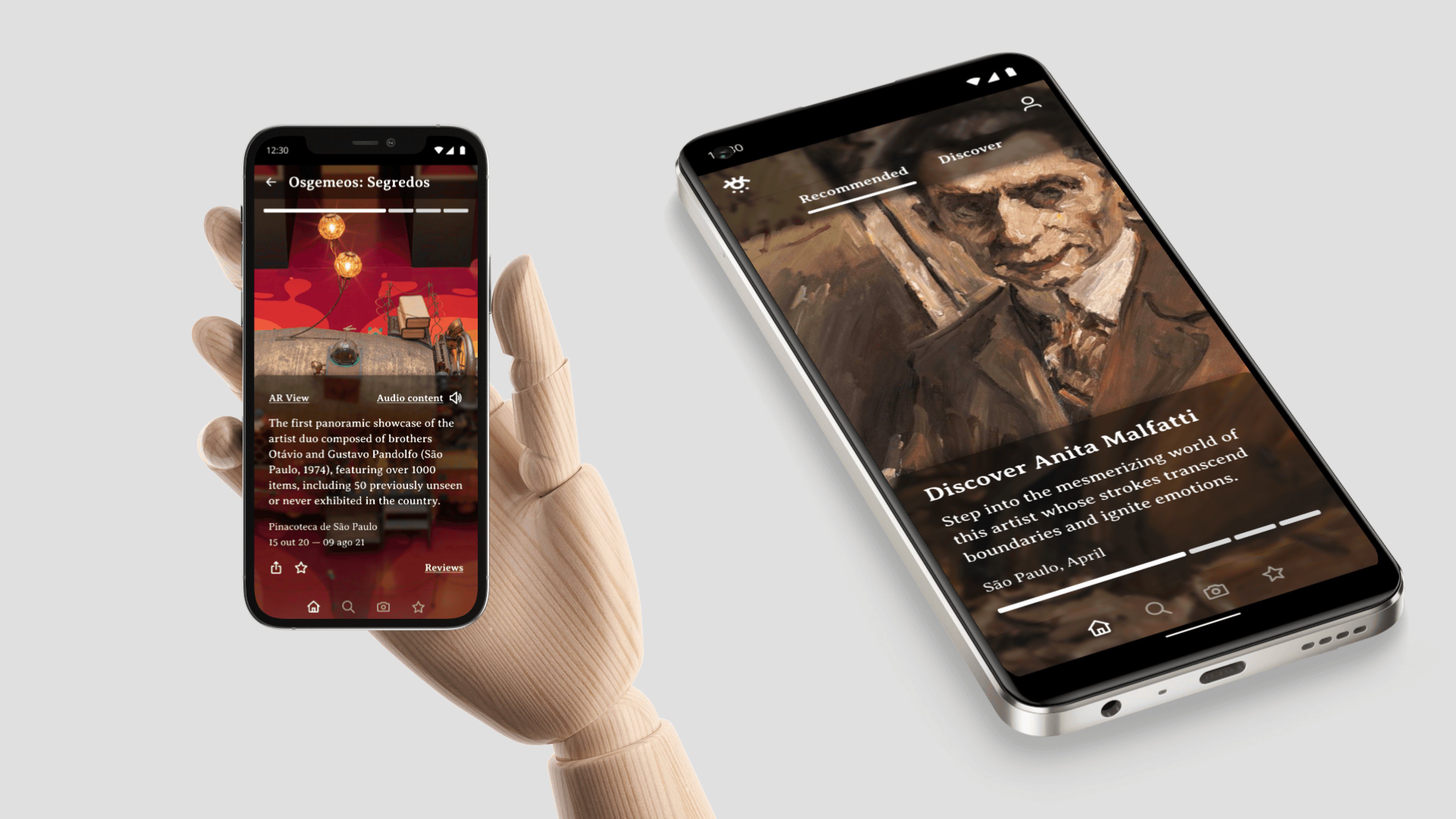 Full exhibit pages with AR View, Audio Content, and curated information